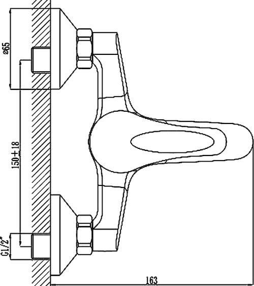 Настенный смеситель для комбинированных санузлов, предназначенный для организации подачи воды в ванну и на душевую лейку. Модель относится к категории практичной сантехники с механическим управлением.