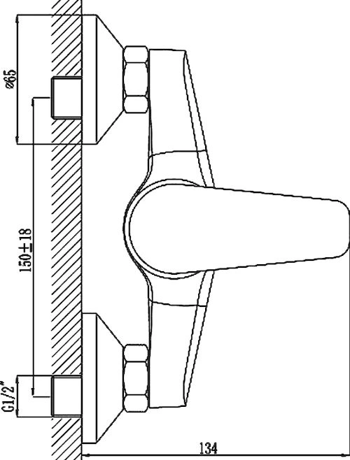 Монтажный размер (межосевое расстояние) для подключения к водопроводу у данной модели составляет 150 мм. Перед покупкой и установкой необходимо убедиться, что этот размер совпадает с выведенными на стене подводками.