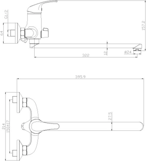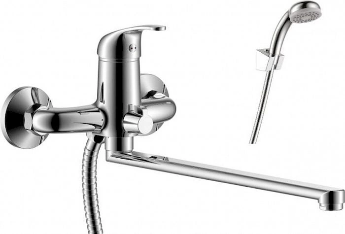 Двухвентильный смеситель настенного монтажа, предназначенный для организации подачи горячей и холодной воды на кухне или в ванной. Модель подходит для установки над раковиной, мойкой или ванной, заменяя собой устаревшую арматуру.