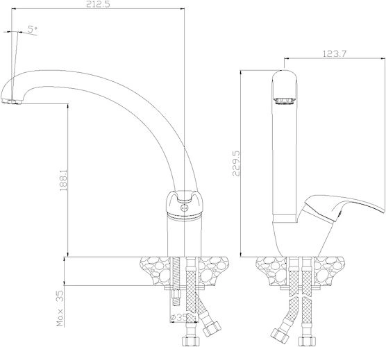 Смеситель для мойки Rossinka Y35-23 предназначен для установки в одно монтажное отверстие диаметром 35 мм. Он совместим с большинством стандартных кухонных моек. В комплектацию входят все необходимые для подключения элементы: эксцентрики, гибкие подводки и декоративный экран.