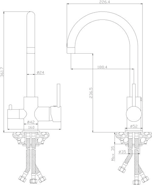 Модель Z35-28 отличается классическим дизайном с плавными линиями высокого излива. Бежевый цвет покрытия не только красив, но и практичен. На такой поверхности менее заметны капли воды и следы от известкового налета. Универсальный оттенок легко впишется в интерьеры в стиле прованс, классика, сканди или лофт, выступая стильным акцентом или мягко дополняя общую палитру.