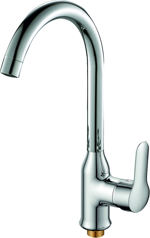 Корпус и поворотный излив изготовлены из цельнотянутой латуни. Этот материал обеспечивает устойчивость к механическим нагрузкам и коррозии. Угол поворота излива составляет 140 градусов, что позволяет комфортно мыть крупную посуду.