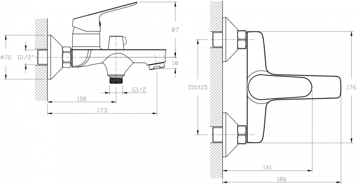 Смеситель Rush Yell YE5735-44 для ванны с душем