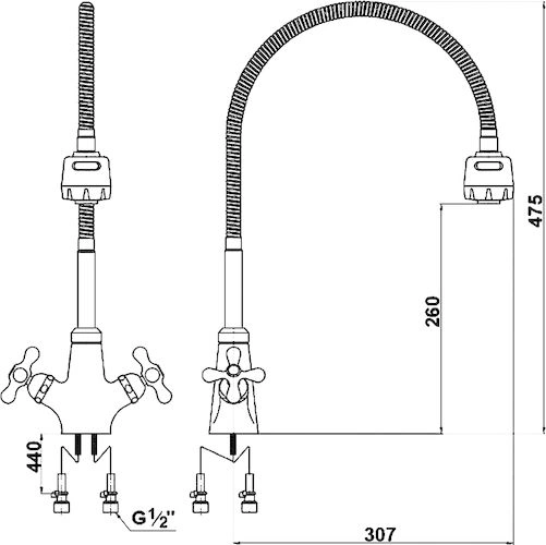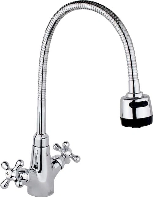 - Высокий поворотный излив для комфортной работы с большой посудой.