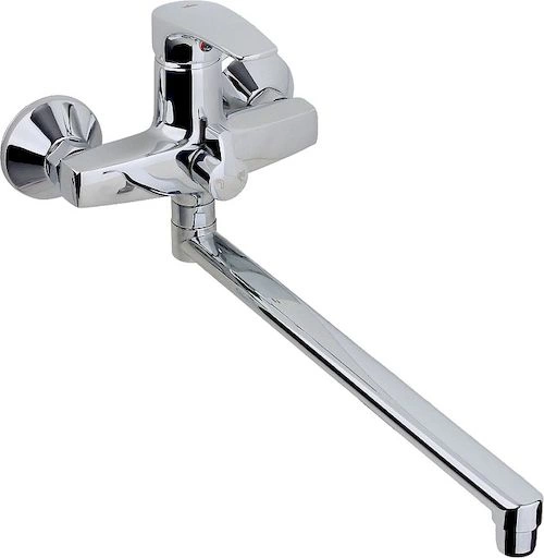 - Излив: высокий, фиксированный, для комфортного использования раковины или наполнения ванны.