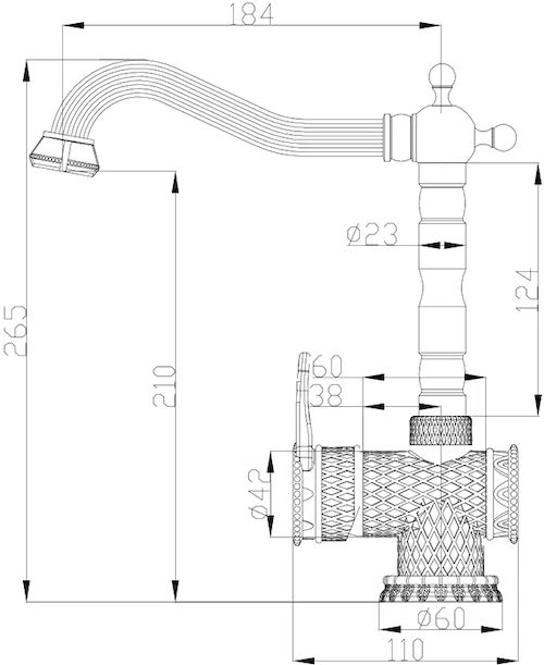 - Дальность выноса излива: 180 мм для оптимального охвата чаши мойки.