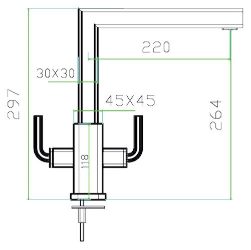 - Поворот излива: 140-150 градусов для охвата всей рабочей зоны.