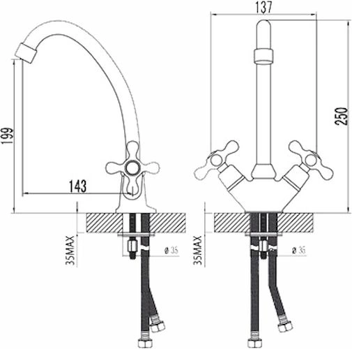 - Убедитесь, что посадочные отверстия в мойке или столешнице соответствуют размерам смесителя.
