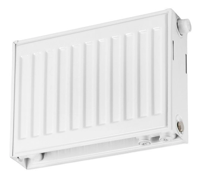 Теплоноситель циркулирует по двум стальным панелям, соединённым вертикальными коллекторами. Конвекторные пластины между панелями интенсивно нагревают проходящий воздух, создавая мощный тепловой поток. Встроенные втулки G 1/2 для нижнего подключения универсальны для большинства комплектов арматуры.