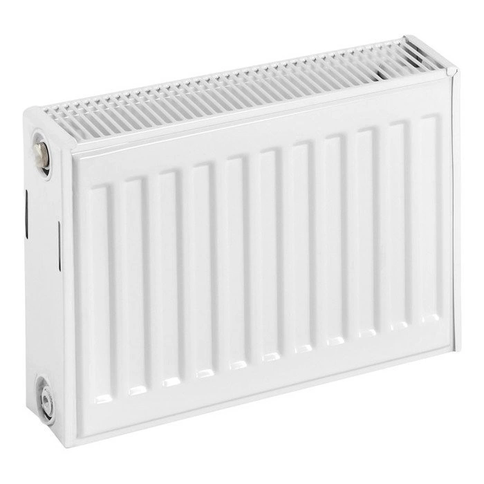- Двухпанельная конструкция типа 22 увеличивает площадь нагревательной поверхности по сравнению с однопанельными моделями. Вы получаете более высокую теплоотдачу при компактных габаритах, что позволяет быстрее прогревать комнату и рационально использовать пространство под окном.