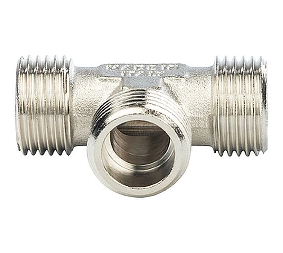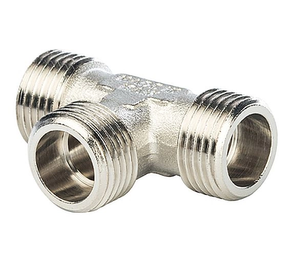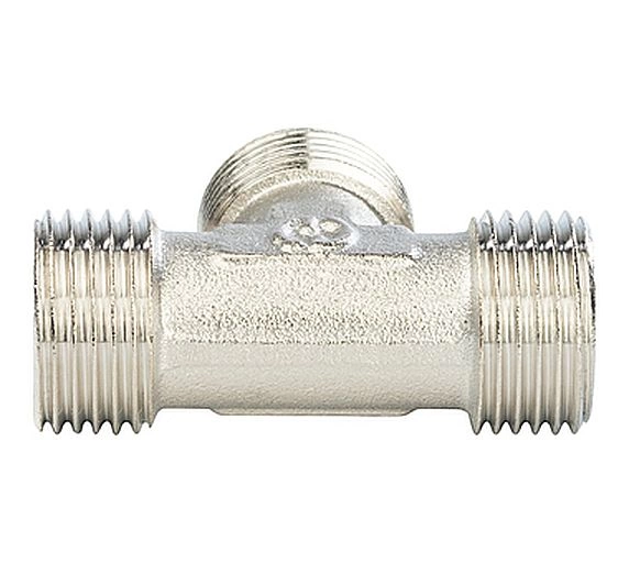 Тройник типа НН (наружная резьба с обеих сторон) изготовлен из качественной латуни и покрыт слоем никеля. Это обеспечивает коррозионную стойкость, привлекательный внешний вид и совместимость с различными типами труб.