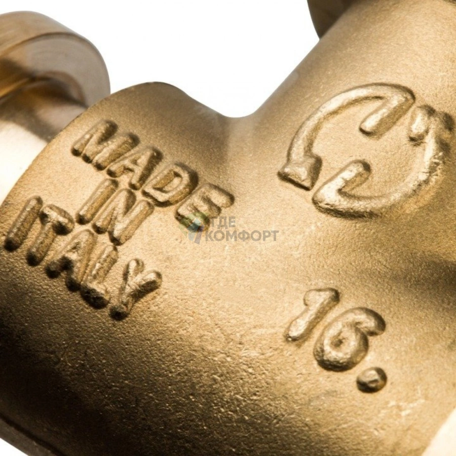 Надежность фитинга заложена в его конструкции. Корпус изготовлен из латуни марки CW617N, что гарантирует стойкость к механическим нагрузкам и коррозии. Наружное покрытие - гальваническое никелирование, которое защищает от окисления и придает изделию современный вид. Компактные габариты облегчают монтаж в стесненных условиях.