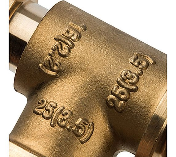 Размеры 25x25x16 обозначают диаметры присоединяемых трубок. Два отвода имеют диаметр 25 мм (для основной линии), а один отвод - 16 мм (для создания ответвления меньшего диаметра). Это позволяет организовать переход с основной трубы на линию меньшего сечения.