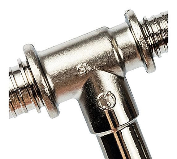 - Тип соединения: Под пресс-фитинги для труб PEX. Обеспечивает неразъемное, абсолютно герметичное и надежное соединение, не требующее обслуживания.