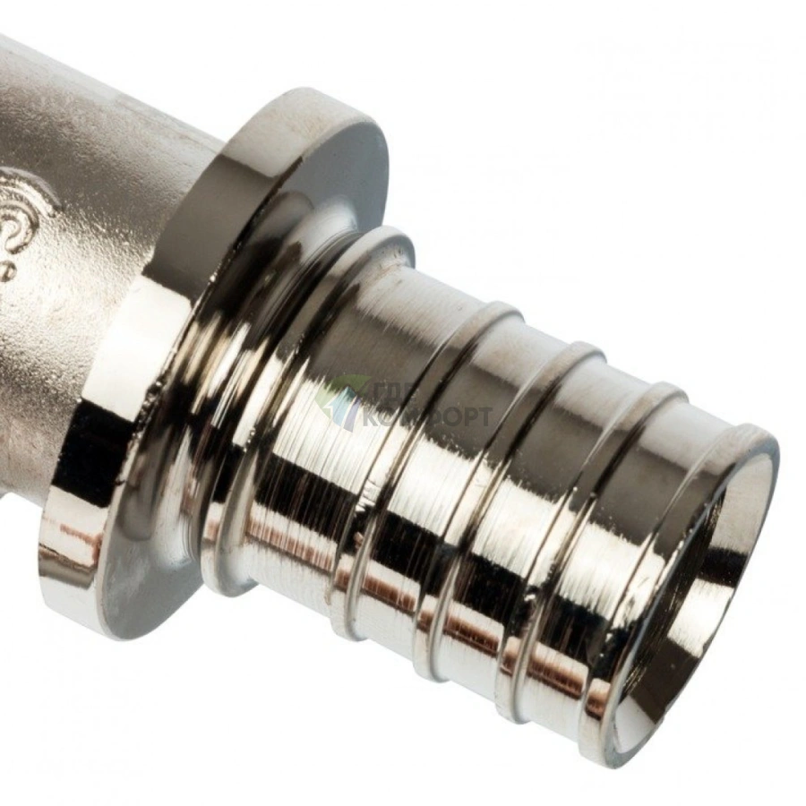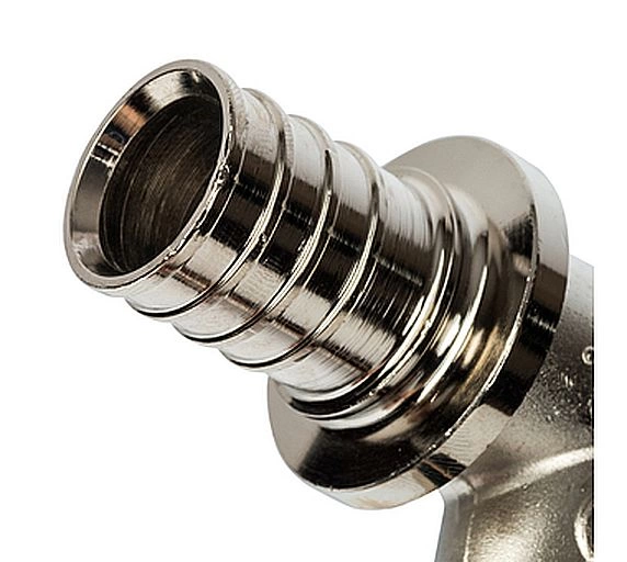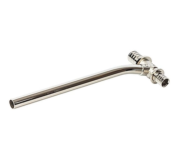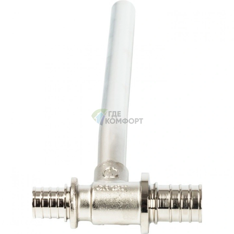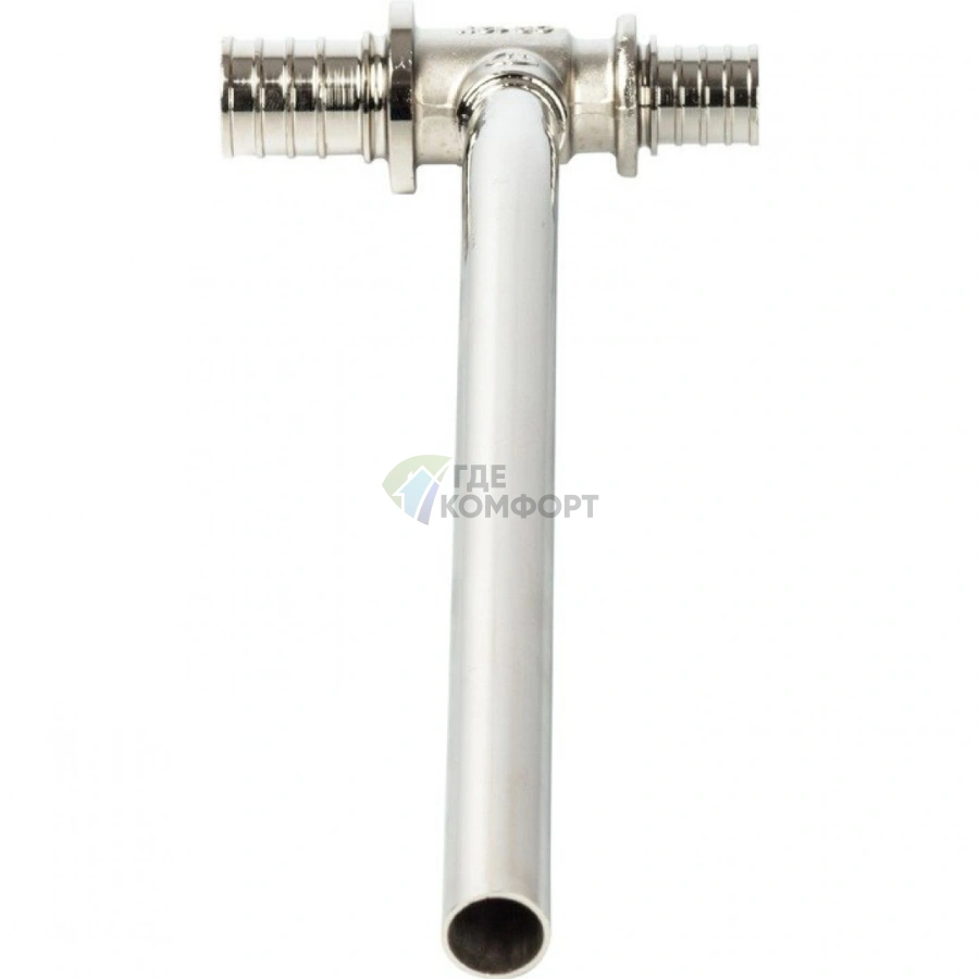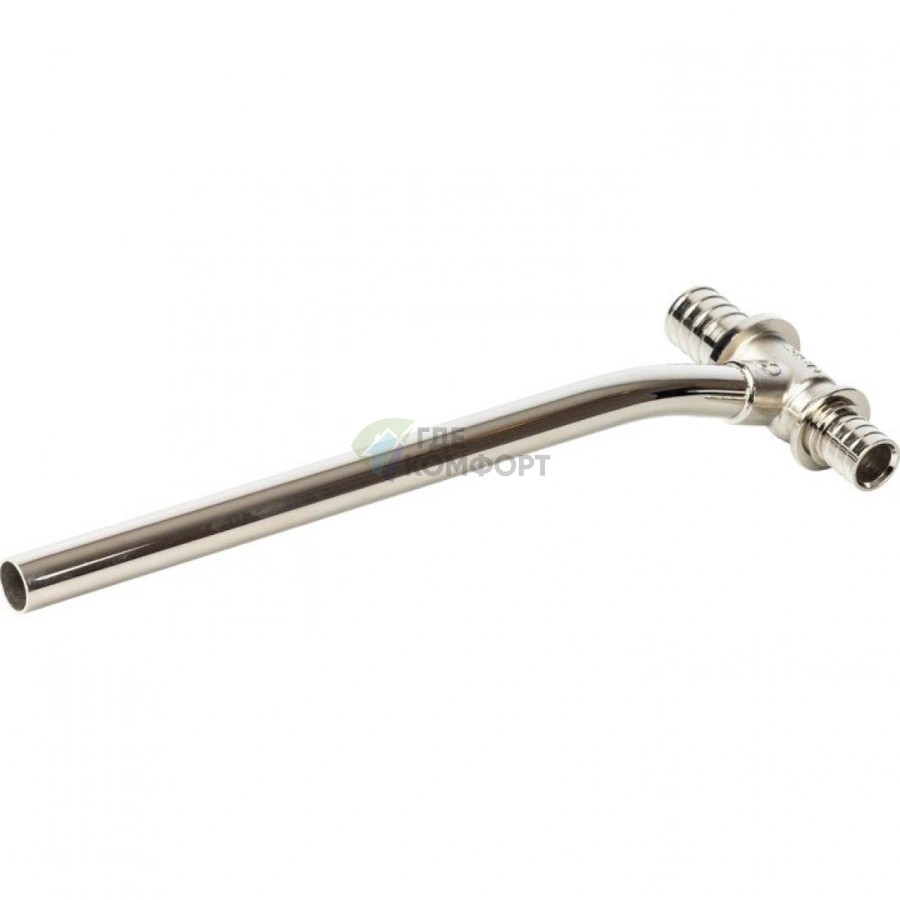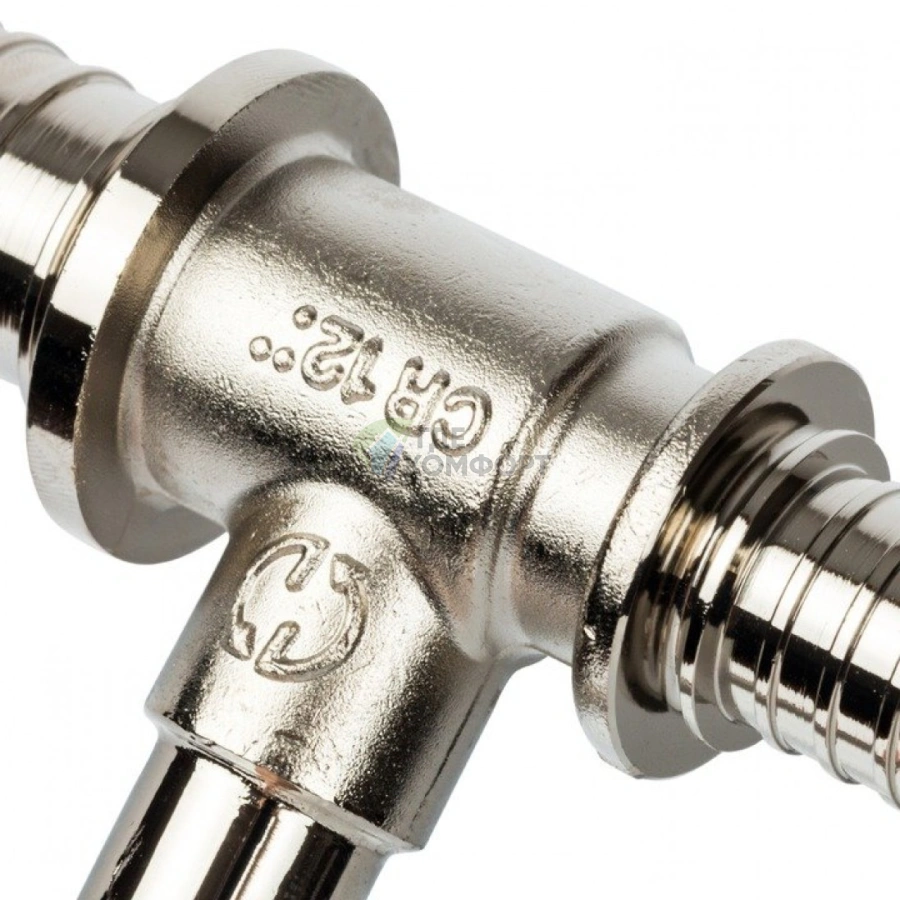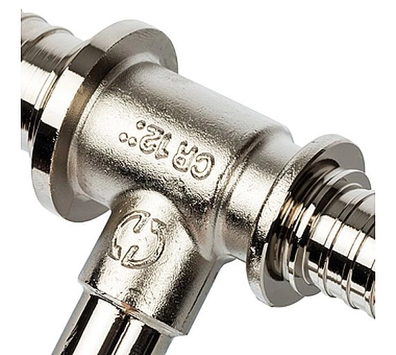 Тройник изготовлен из латуни с никелированным покрытием, что обеспечивает коррозионную стойкость и длительный срок службы. Аксиальная система обжима означает, что пресс-гильза надевается непосредственно на трубу, создавая неразъемное и абсолютно герметичное соединение, устойчивое к перепадам давления и температуры.