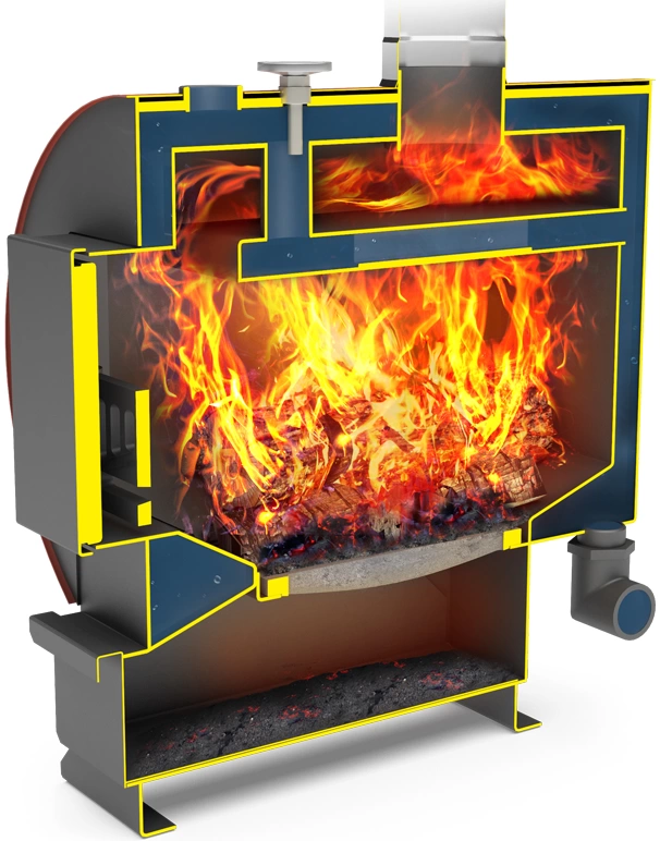 Агрегат эффективно использует дрова, уголь, топливные брикеты и даже отходы древесины. Вы получаете до 8 часов горения на одной закладке дров благодаря продуманной конструкции топки и системе подачи воздуха. Это позволяет экономить топливо и ваше время на обслуживание.