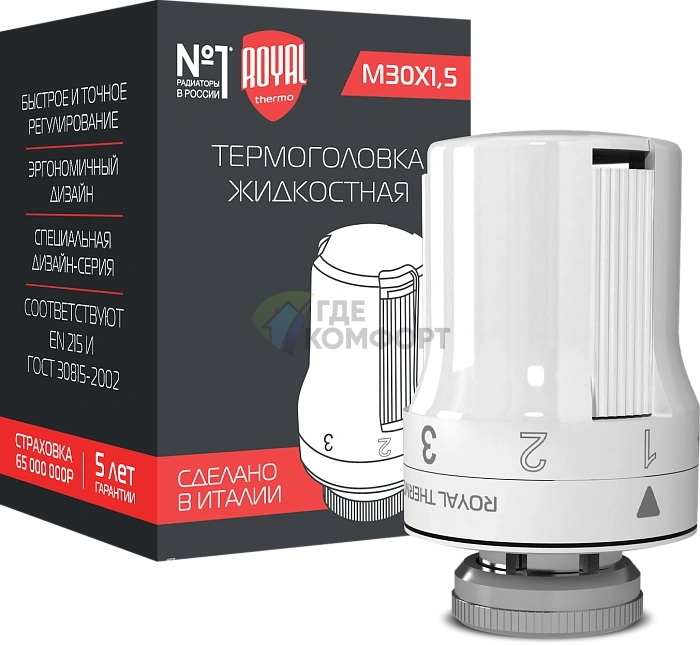 Термоголовка жидкостная Royal Thermo, M30 x 1,5 белый, RTE 50.030, НС-1050904