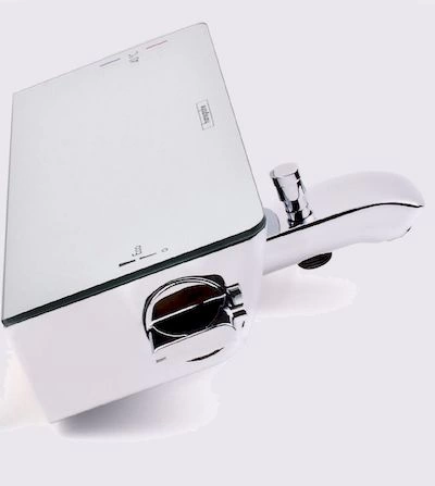 В отличие от обычных двухвентильных смесителей, термостат автоматически смешивает горячую и холодную воду до заданной температуры. Это происходит мгновенно, даже если давление в системе внезапно изменилось.