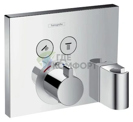 Термостат Hansgrohe Logis 15765000 - это готовый комплект для душа, который включает термостатический картридж для поддержания постоянной температуры воды, регулировочную рукоятку, душевую стойку в стильной хромированной отделке и экономичную душевую лейку. Остается только подключить систему к водопроводу.