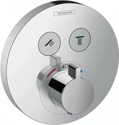 Термостат Hansgrohe ShowerSelect S - это интеллектуальное смесительное устройство, которое автоматически поддерживает заданную вами температуру воды. Его ключевая функция - защита от ошпаривания и постоянный комфорт при любом перепаде давления в системе. Он запоминает две любимые температуры, имеет кнопку экономии воды и функцию временной остановки потока.