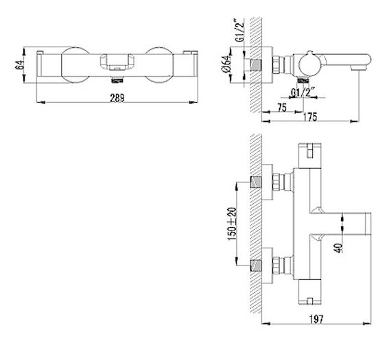Установка стандартная для настенных смесителей. Термостат монтируется на стену с подключением к выводам горячей и холодной воды (1/2"). Важное условие для корректной работы - правильное подключение к соответствующим магистралям (слева - горячая, справа - холодная вода). Для монтажа рекомендуется привлечь профессионального сантехника.