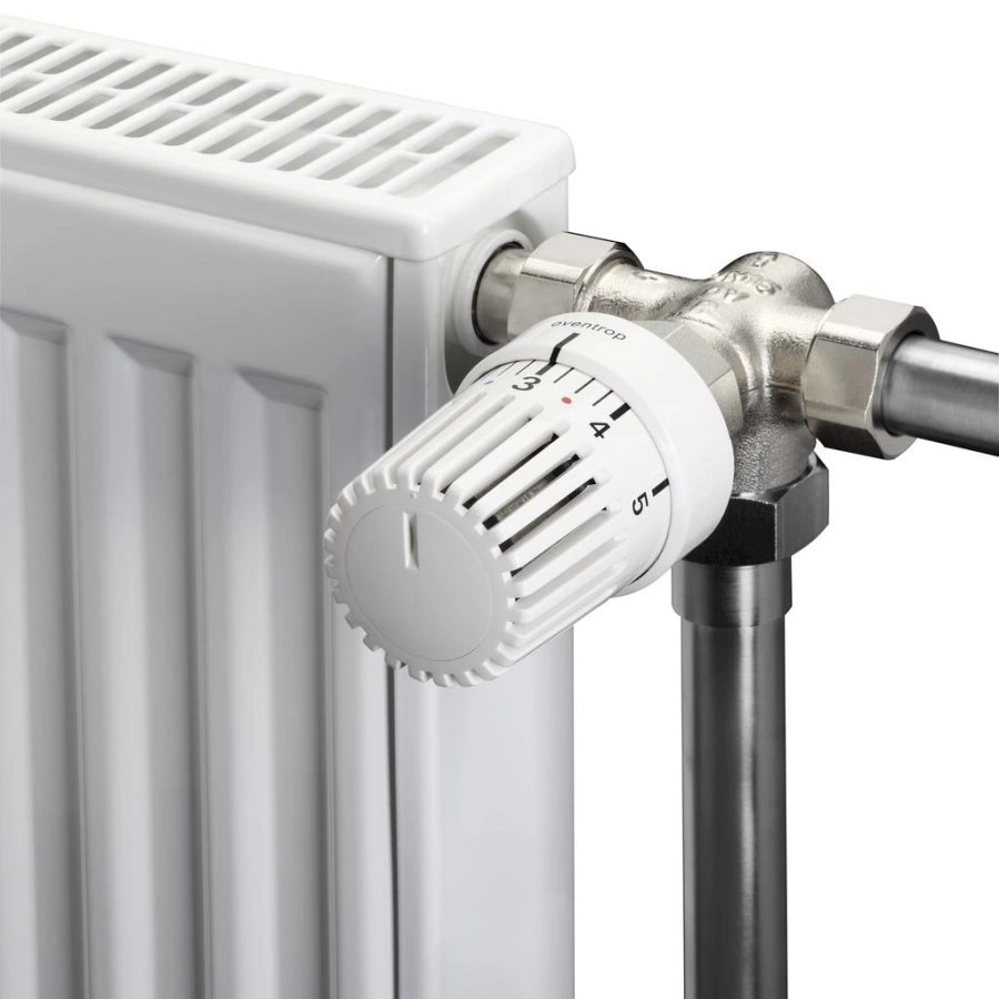 Термостатический элемент управляет клапаном, который плавно изменяет поток теплоносителя через радиатор. При повороте белой рукоятки вы задаете нужный уровень нагрева, а механизм автоматически поддерживает заданные параметры, компенсируя изменения температуры в помещении.