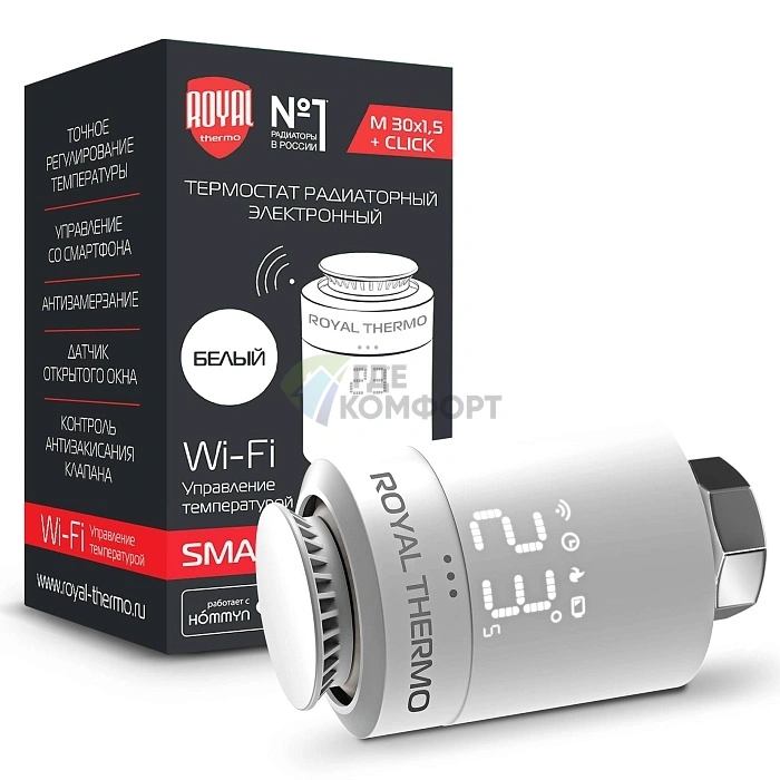 Термостат радиаторный электронный Royal Thermo Smart Heat, белый RTE 77.001 (Роял Термо)