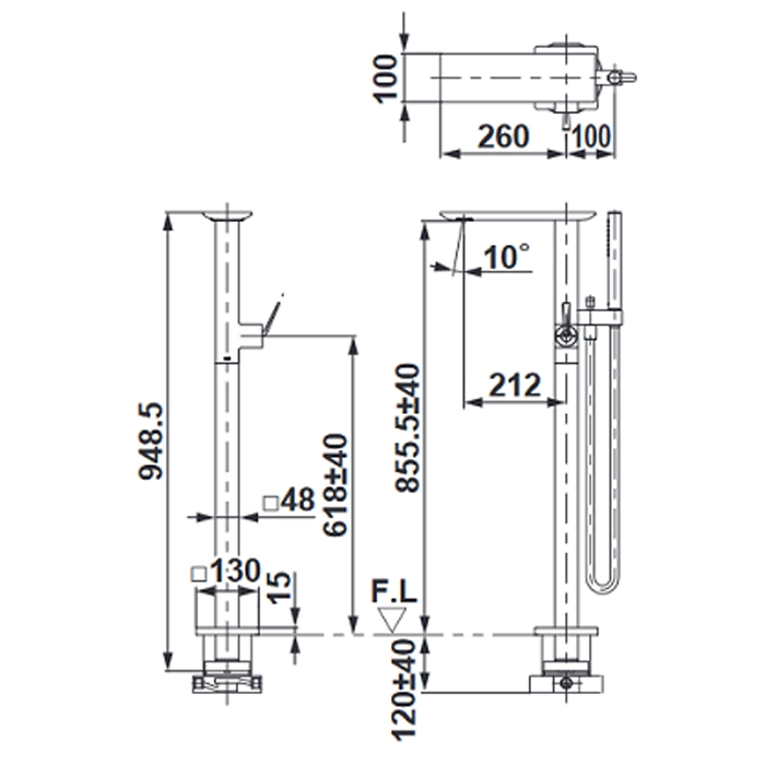 - Отдельностоящий монтаж: смеситель не требует встраивания в борт ванны или стену, что упрощает установку и открывает больше возможностей для планировки.