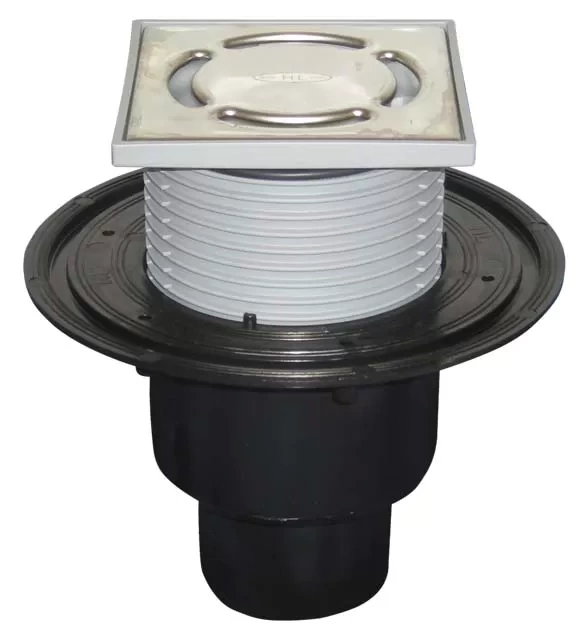 После монтажа корпуса и проверки на герметичность, укладывается стяжка и плитка. Регулировочный механизм позволяет точно вывести решетку в уровень с чистовым покрытием.