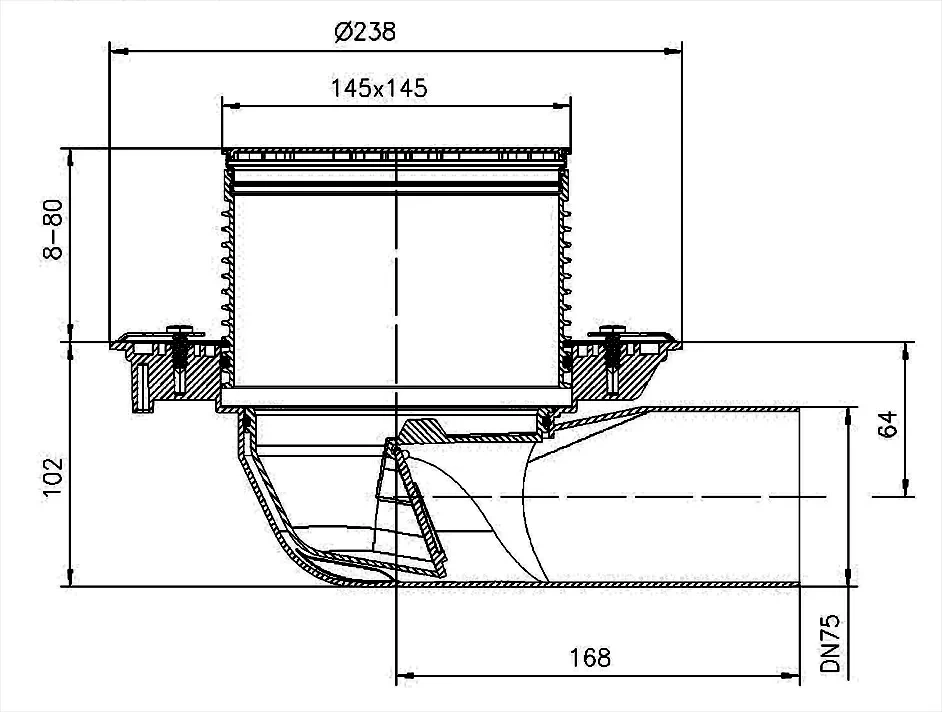 Модель HL5100T представляет собой усовершенствованное решение в линейке напольных трапов для помещений с высокими нагрузками и низкими температурами. Эта конструкция с горизонтальным выпуском и специальным сифоном решает проблему замерзания и засоров, характерную для стандартных систем водоотвода.