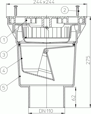 Трап HL606L с пластиковой решеткой 226x226 мм-незамерзающим запахозапирающим устройством и вертикальным выпуском DN110 или DN60
