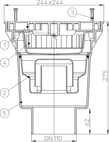Вертикальный выпуск DN110 позволяет подключить трап напрямую к канализационному стояку того же диаметра. Это экономит пространство под полом, уменьшает количество соединений (а значит, и потенциальных протечек) и упрощает монтаж.