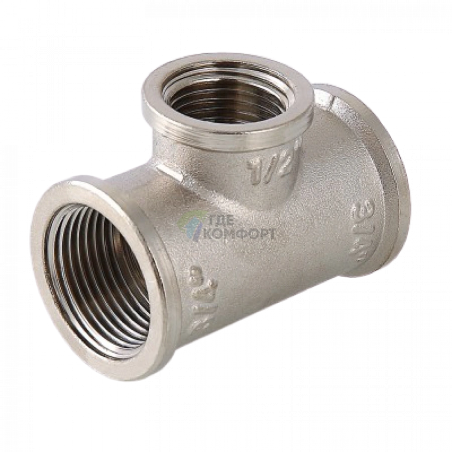 Тройник Valtec изготовлен из качественной латуни CW617N с никелевым покрытием, что гарантирует надежность и защиту от коррозии. Это не дешевый силумин, который может лопнуть при затяжке. Материал и качество резьбы обеспечивают герметичное соединение без протечек при правильном монтаже. Покрытие не только защищает, но и придает аккуратный внешний вид.