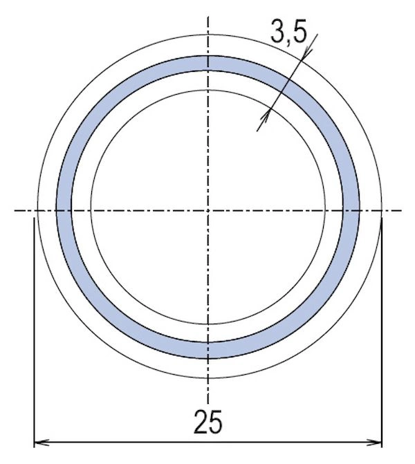 - Наружный диаметр и толщина стенки: 25 мм x 3,5 мм.