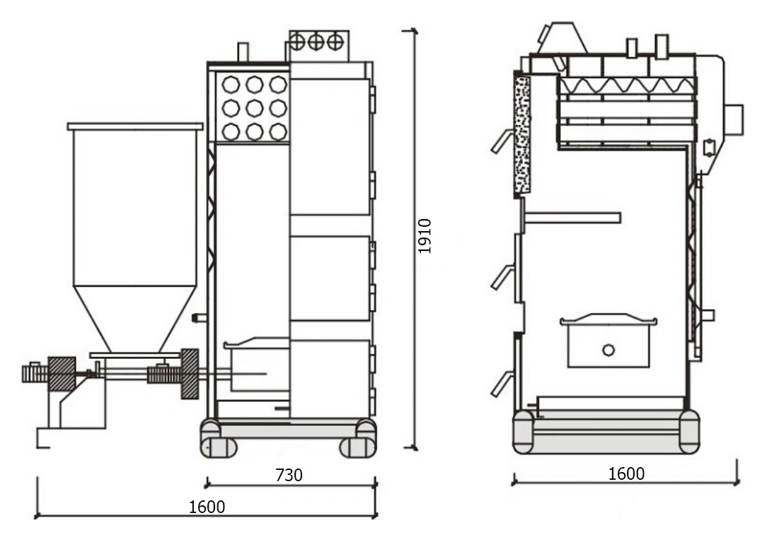 - Система автоматической подачи топлива с шнековым транспортером.