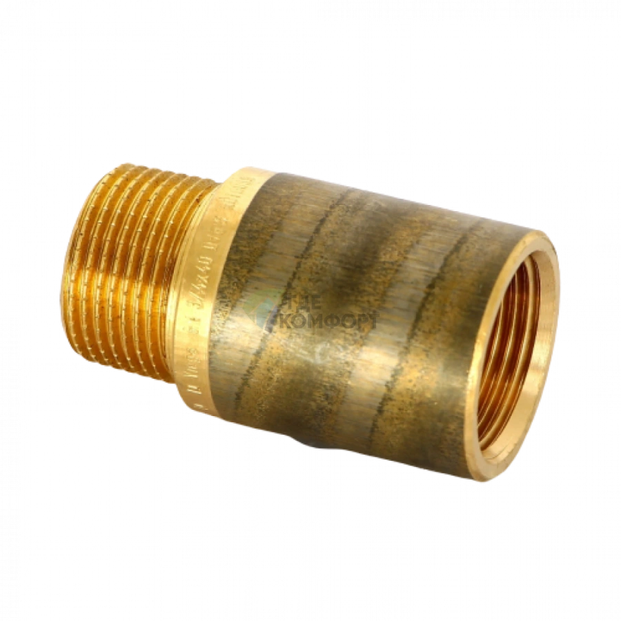 - Конструкция: классическая форма патрубка-удлинителя с наружной резьбой G3/4" (3/4 дюйма) и длиной 40 мм, что делает его универсальным решением для стыковки оборудования.