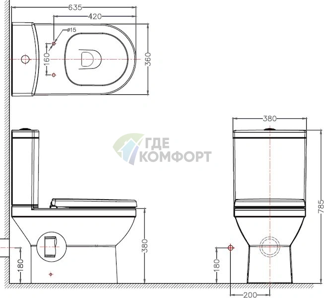 - Прямой смыв: эффективное очищение чаши при расходе всего 4/2 литра.