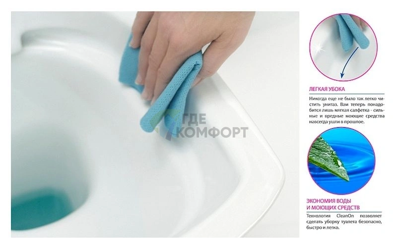 Для ухода используйте мягкие губки или щетки и неабразивные чистящие средства. Избегайте составов с высокой концентрацией кислот или хлора, которые могут повредить поверхность. Регулярная чистка предотвратит образование известкового налета. Сиденье с микролифтом следует мыть мягкими средствами без сильнодействующих растворителей.