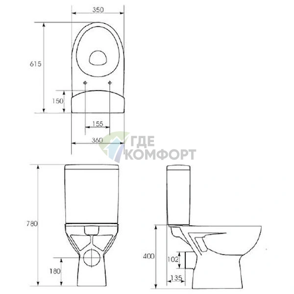 - Высота установки (от пола до обода чаши): ~400 мм (стандартная)