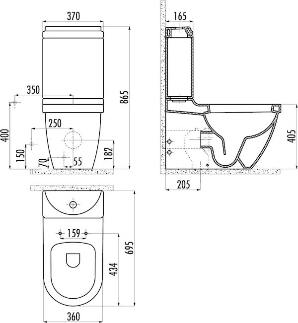 - Регулируемая кнопка смыва (3/6 литров) позволяет гибко контролировать водопотребление.