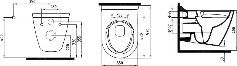 - Способ установки: Подвесной монтаж на инсталляцию, что экономит пространство и облегчает уборку пола.