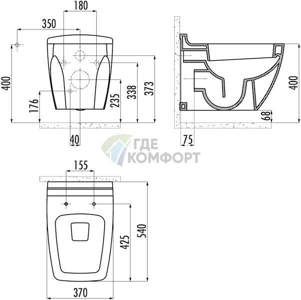 - Способ смыва: прямой, двухрежимный (3/6 л)