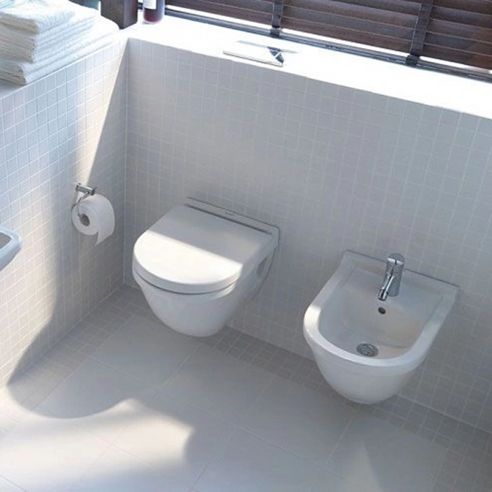 - Визуальное восприятие: Массивная чаша напольного унитаза - доминанта в санузле. Парящая чаша Starck 3, напротив, визуально облегчает интерьер, делая его стильным и лаконичным.