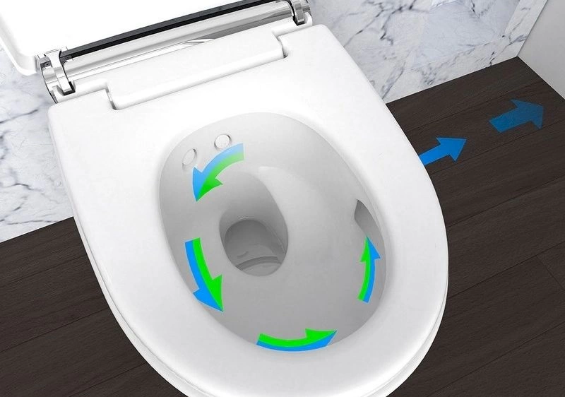 Модель оснащена встроенным угольным фильтром и вентилятором. При активации система принудительно забирает воздух из зоны чаши, пропускает его через фильтр и выводит в канализационную трубу или специальный отвод, предотвращая распространение запахов в помещение.