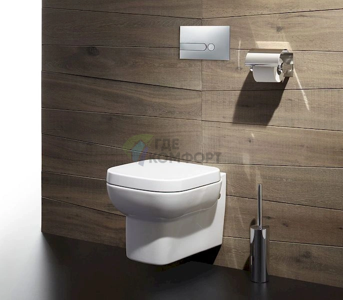 - Двухрежимная кнопка смыва: механизм подаёт 3 или 6 литров воды, позволяя контролировать потребление. Система оснащена функцией «Стоп-смыв».