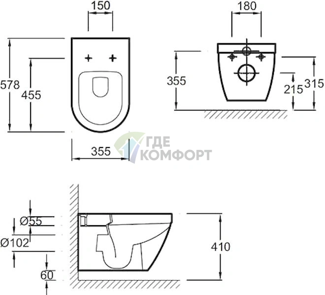 - Асимметричная чаша: комфортная посадка и эффективный гидрозатвор.