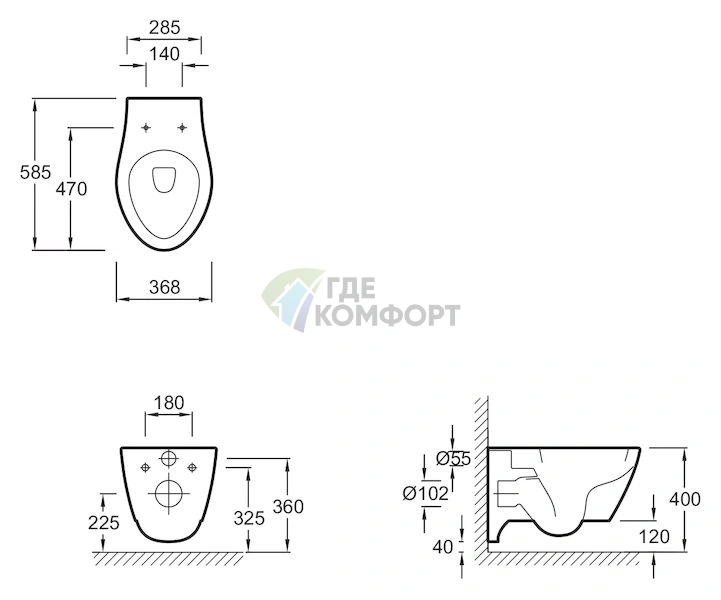 Ключевые параметры подвесного унитаза Via E1744-00
