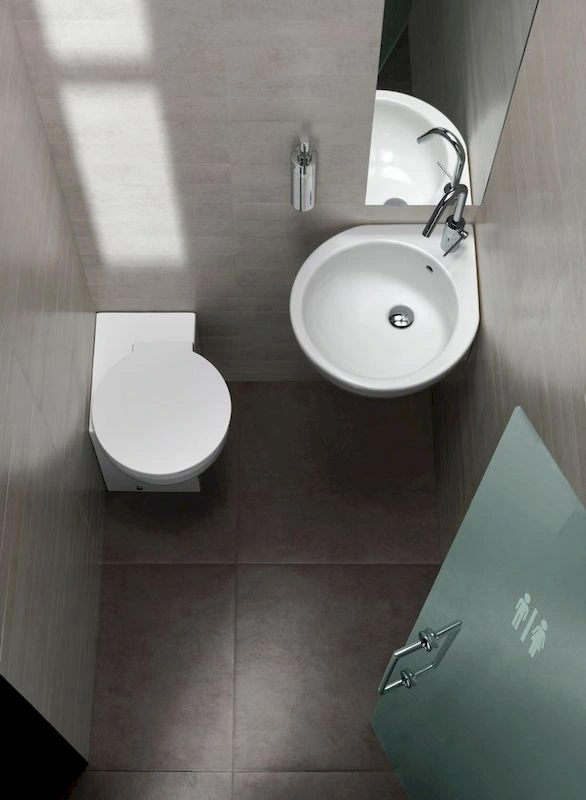 Приставная сантехника угловой формы серии You-Me от Hatria создана для монтажа в ограниченном пространстве. Модель относится к классу компактных напольных унитазов и позволяет эффективно использовать площадь санузла, освобождая центр помещения.