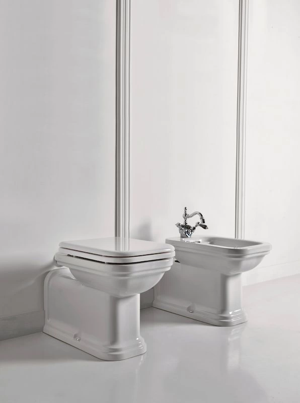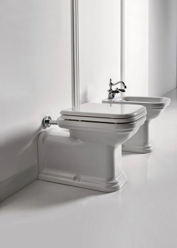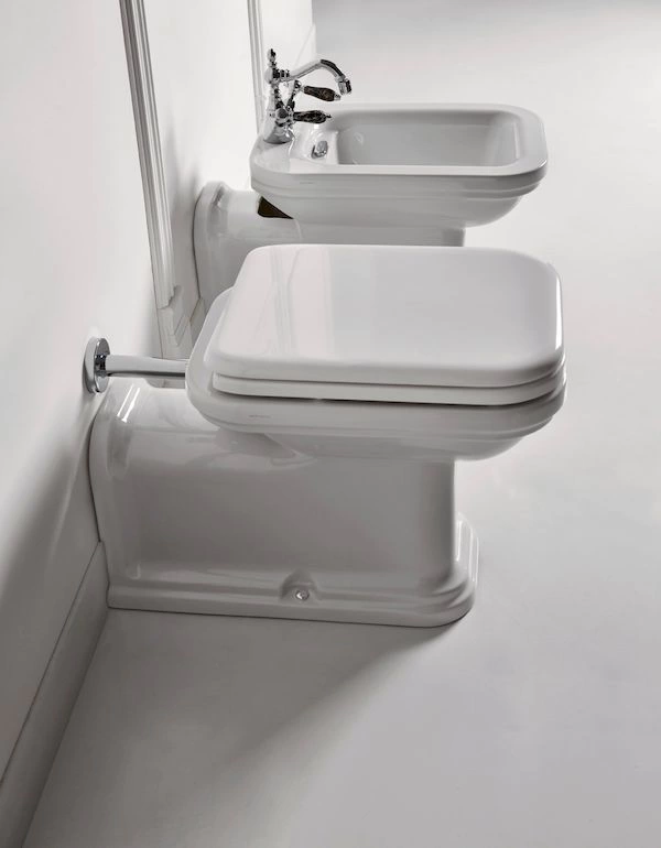 Приставная установка унитаза Kerasan Waldorf означает, что бачок монтируется непосредственно на чашу, а коммуникации скрываются за конструкцией. Это создает цельный, аккуратный вид и облегчает уборку вокруг сантехнического прибора. Система «антивсплеск» и эффективный круговой обод обеспечивают безупречную чистоту после каждого использования.
