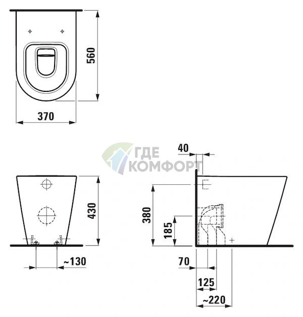 | Требуется для монтажа | Рама инсталляции Laufen (приобретается отдельно) |